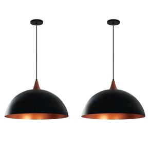 Kit 2 lustres Pendentes Meia Lua com Chapéu Preto Com Cobre Lustre Pendente Modelo: Meia Lua com Chapéu Cor: Preto com Cobre Medidas Aproximadas: Altura: 28 cm Diâmetro: 40cm Canópla de teto: 12 cm Soquete e-27 plástico Material: alumínio Marca R.R.J.V Negócios O pendente acompanha 1 Um Metro de fio com altura ajustável. Marca: Não Informado