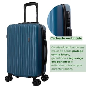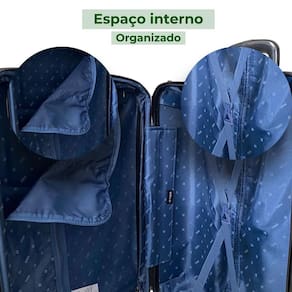 Dimensões mala bordo: 55cm x35cm x25cm 10kg Dimensões mala média: 66cm x45cm x28cm 23kg Cadeado: integrado 3 dígitos Rodas: 360º obs: removível apenas no tamanho médio Alças: superior Peso: mala média 3,5kg / mala bordo 2,3kg