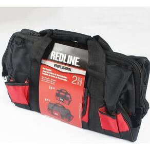 Kit com 2 bolsas para ferramentas da marca Redline, nas cores vermelho e preto. Feitas de tela Oxford, com medidas de 43x26x26cm e 30x26x26cm. Embalagem com 32cm de comprimento, 48cm de largura e 5cm de altura, pesando 1,2kg. de 6 meses, . Altura do produto de 26cm e largura de 43cm. Ideal para organizar e transportar ferramentas com praticidade e segurança. Ean: 0840353420328