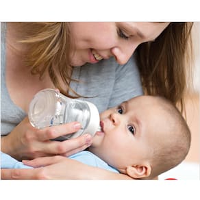 O novo indicador de controle de temperatura possui a sinalização do termômetro, localizada próximo à escala de graduação do frasco, que ajuda os pais na tarefa de assegurar a temperatura adequada dos alimentos para o consumo seguro das crianças. Se o conteúdo estiver muito quente, acima de 37ºC, o botão de temperatura ficará branco, sendo necessário aguardar até retornar à cor azul para oferecer a mamadeira ao bebê.