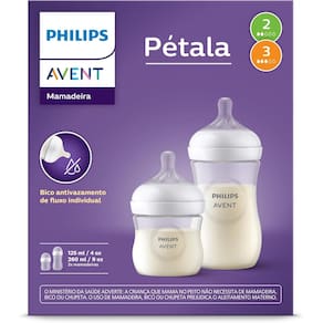 O kit inclui duas mamadeiras de tamanhos diferentes 125ml (0+ meses) e 260ml (1+ meses), proporcionando a flexibilidade necessária para cada fase do crescimento do seu bebê.