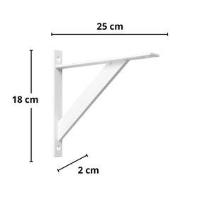 O Kit com 2 Suportes Mão Francesa da marca Novo foi projetado para oferecer fixação segura, visual clean e excelente acabamento na montagem de prateleiras. O modelo NV453 é fabricado em ferro chato com pintura eletrostática branca, ideal para ambientes que exigem resistência e estética. Cada unidade possui 30 cm de profundidade e 20 cm de altura, suportando até 50 kg por peça. É a escolha ideal para prateleiras maiores ou projetos robustos.