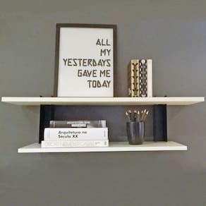 Inspirado pela decoração contemporânea, os suportes de prateleira Fit focam na tendência da utilização do metal no interior dos cômodos, criando espaços que remetem o estilo industrial. Seu design confere mais robustez às prateleiras, que ganham evidência nas paredes. Um kit eficiente, pronto para servir a necessidade de acomodar prateleiras e auxiliar na organização e decoração de seus ambientes favoritos. Funcionais, os acessórios oferecem praticidade e estilo ao dia a dia de ambientes residenciais e corporativos. Práticas, as prateleiras deixam os objetos com fácil acesso e decoram com muita criatividade os cômodos, especialmente escritório, sala de estar, cozinha, dormitório e área de estudos. Produzidas em aço carbono, as mãos francesas reforçadas têm capacidade de carga de 20kg cada.