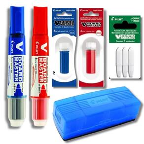 - 2 Marcadores de Quadro Branco Recarregável PILOT 2 Refil de Tinta para Marcador Recarregável 1 Apagadores de Quadro Branco PILOT 1 Refil de ponta para Marcador PILOT