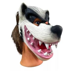 Lobo Gigante Branco Modelo: Cabeça inteira Tamanho: Único Material: Látex Cor: Branca e preta