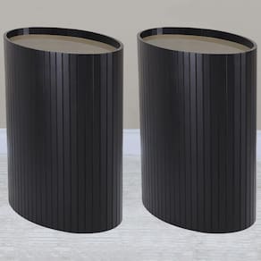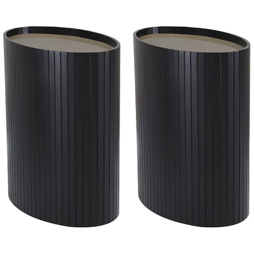 Kit 2 Mesa Apoio Lateral Oval Tampo Vidro Glow Madeira Ébano Preto, é um uma peça versátil e moderna, ideal para deixar sua casa com uma estética incrível. Estrutura em madeira de tauari em forma de esteirinha e tampo em vidro de 6 mm. Compostas por tampo de vidro na cor glow, e madeira tauari em forma de esteirinha com acabamento em ébano preto. Suporta até 15 Kg distribuídos. Possui design sofisticado, que oferece versatilidade e charme a sua decoração. Este móvel chegará em sua casa separado em 02 volumes.