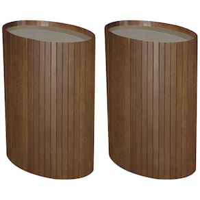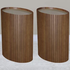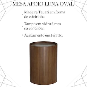 Kit 2 Mesa Apoio Lateral Oval Tampo Vidro Glow Madeira Pinhão, é um uma peça versátil e moderna, ideal para deixar sua casa com uma estética incrível. Estrutura em madeira de tauari em forma de esteirinha e tampo em vidro de 6 mm. Compostas por tampo de vidro na cor glow, e madeira tauari em forma de esteirinha com acabamento em pinhão. Suporta até 15 Kg distribuídos. Possui design sofisticado, que oferece versatilidade e charme a sua decoração. Este móvel chegará em sua casa separado em 02 volumes.