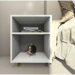 Mesa cabeceira nicho quarto Cor: Branco com pés madeirado