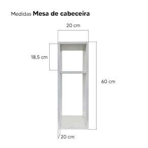 Suas medidas são: 60cm de altura x 20cm de largura x 20cm de profundidade. Possui um nicho interno medindo: 18,5cm de altura. Produto suporta até 3kg.