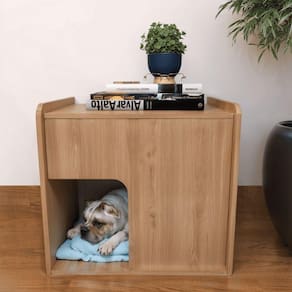 Esta mesa de cabeceira com cama integrada para cães foi projetada para oferecer funcionalidade e conforto tanto para você quanto para seu pet. Aplicações: