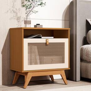 MDFA Mesa de Cabeceira Camu-Camu New une charme e funcionalidade em um design retrô moderno.