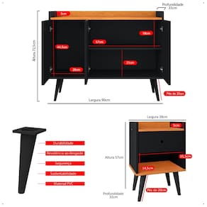 O Aparador Buffet Wood New completa o kit com elegância: equipado com portas amplas, ele é ideal para armazenar utensílios, louças ou até mesmo objetos decorativos. Os pés palito em PVC trazem um toque vintage que harmoniza com diferentes estilos de decoração, do moderno ao retrô.