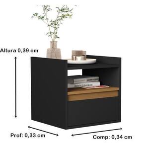 Kit 2 Mesas de Cabeceira Suspensa com Porta Medina Plus - Cores - Comprar Moveis para sua Casa Cor: Preto/Nature Mesa de cabeceira Suspensa Minerva estilo retrô, embalado com caixa reforçada nas laterais para não ocorrer no transporte. Vendido pela Comprar Móveis em casa para deixar seu ambiente mais bonito e sofisticado Procure nossas redes sociais e confira todos nossos produtos e qualidade de atendimento : Produto com video de montagem no nosso canal, acesse nossas redes sociais: Comprar Móveis em Casa DIMENSÕES DO PRODUTO MONTADO Altura: 0,39 cm Largura: 0,34 cm Profundidade: 0,33 cm Caractersticas: 1 Porta basculante Cabeceira suspensa, acompanha grapa para instalação Material: MDP / MDF pode haver variações da matéria em lotes diferentes Pintura UV MONTAGEM: Este produto acompanha kit de montagem + manual de instrução detalhando passo a passo de como montar. A montagem do produto deverá ser feita por um , para que não ocorram danos no produto. não nos responsabilizamos por erro de montagem Atenção: A montagem não é oferecida pela Comprar Móveis em Casa, a montagem do produto é por conta do comprador. OBSERVAÇÕES IMPORTANTES: A é de 90 dias por defeitos de fabricação. Em caso de erro de montagem, uso inadequado do produto, ou outros acidentes do gênero esta não será acionada. Se no ato de recebimento do produto o cliente verificar que o produto não está em prefeito estado, principalmente por ocasião de transporte irregular, o cliente deverá recusar o recebimento do produto e entrar em contato para resolver o problema. Podem haver variações referentes à tonalidade das cores expressas nas fotos, por conta de fatores como iluminação e brilho de cada monitor/celular. Fotos meramente ilustrativas, não acompanham os produtos de decoração. Se atente com a politica de troca/devolução da empresa, pois não é possivel realizar devolução do item montado. Marca: Não Informado