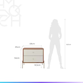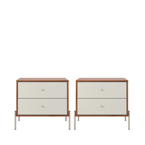 Kit 2 Mesas de Cabeceira 2 Gavetas Jasper 64 cm - Canella c/ Champanhe - Marrom