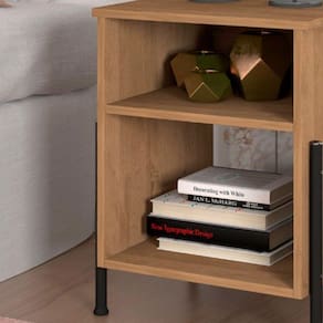 Elas são confeccionadas em madeira, acabamento em pintura BP e com pés em aço carbono, o ideal para garantir resistência e prolongar e vida útil do produto. Ah, e elas ainda contam com 2 nichos para armazenar seus objetos da melhor forma!