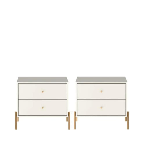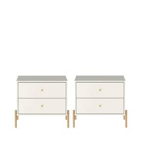 Mesa de Cabeceira 2 Gavetas Jasper 64 cm - Off White Fosco c/ Dourado