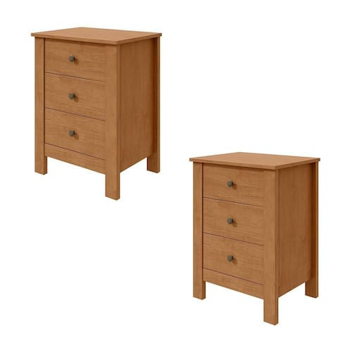 Kit 2 Mesas De Cabeceira Dubai Com 3 Gavetas New Amendoa Clean