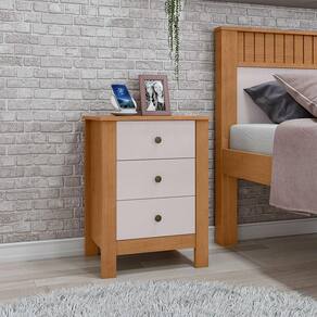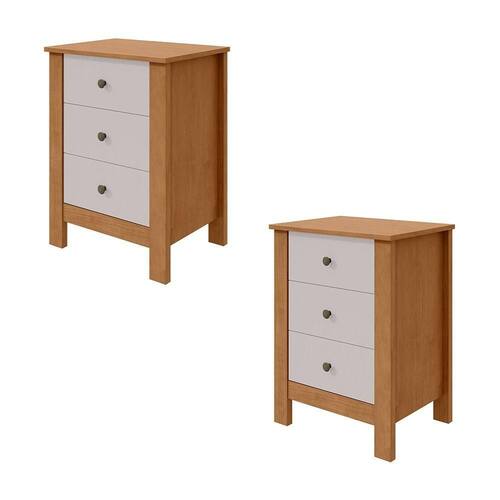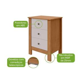 AS IMAGENS SÃO MERAMENTE ILUSTRATIVAS E PODEM SOFRER VARIAÇÕES DE COR E PEQUENOS DETALHES DE ACORDO COM O SEU MONITOR, ILUMINAÇÃO DO AMBIENTE E ATÉ MESMO A SUA PERCEPÇÃO 2 Mesas de Cabeceira Dubai com 3 Gavetas New Amendoa/off White