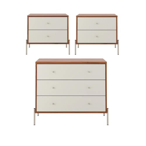 Especificações: Conjunto composto por 2 mesas de cabeceira e 1 cômoda.