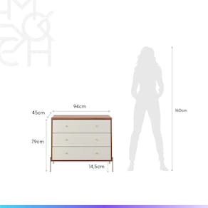 Cômoda 3 Gavetas Jasper 94 cm - Off White Fosco c/ Canella - Champanhe