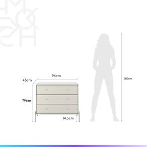 Cômoda 3 Gavetas Jasper 94 cm - Off White Fosco c/ Champanhe