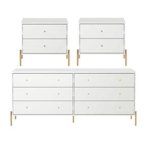 Mesa de Cabeceira 2 Gavetas Jasper 64 cm - Branco c/ Dourado