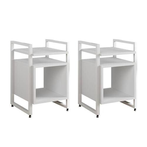 AS IMAGENS SÃO MERAMENTE ILUSTRATIVAS E PODEM SOFRER VARIAÇÕES DE COR E PEQUENOS DETALHES DE ACORDO COM O SEU MONITOR, ILUMINAÇÃO DO AMBIENTE E ATÉ MESMO A SUA PERCEPÇÃO 2 Mesas de Cabeceira Industrial Marrocos Ferro Branco e Tampo Branco