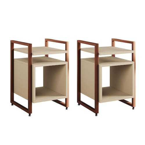 AS IMAGENS SÃO MERAMENTE ILUSTRATIVAS E PODEM SOFRER VARIAÇÕES DE COR E PEQUENOS DETALHES DE ACORDO COM O SEU MONITOR, ILUMINAÇÃO DO AMBIENTE E ATÉ MESMO A SUA PERCEPÇÃO 2 Mesas de Cabeceira Industrial Marrocos Ferro Cobre e Tampo Off-white
