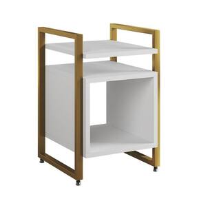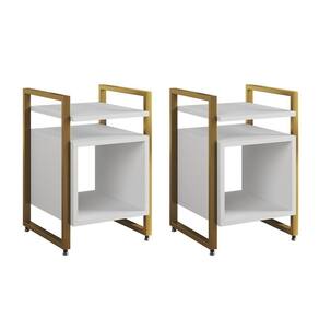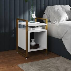 AS IMAGENS SÃO MERAMENTE ILUSTRATIVAS E PODEM SOFRER VARIAÇÕES DE COR E PEQUENOS DETALHES DE ACORDO COM O SEU MONITOR, ILUMINAÇÃO DO AMBIENTE E ATÉ MESMO A SUA PERCEPÇÃO 2 Mesas de Cabeceira Industrial Marrocos Ferro Dourado e Tampo Branco