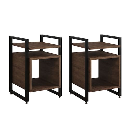 Kit 2 Mesas de Cabeceira Industrial Marrocos Ferro Preto e Tampo Amêndoa - Marrom