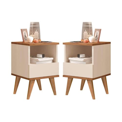 Mesa de cabeceira Marilia estilo retrô, pés palito, embalado com caixa reforçada nas laterais para não ocorrer avaria no transporte. Vendido pela JM Casa dos Móveis para deixar seu ambiente mais bonito e sofisticado! Procure nossas redes sociais e confira todos nossos produtos e qualidade de atendimento :)