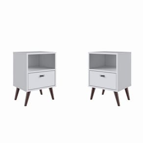 Kit 2 Mesas de Cabeceira Pequena Apoio Lateral Com 1 Gaveta 4 Pés Quarto Branco
