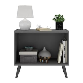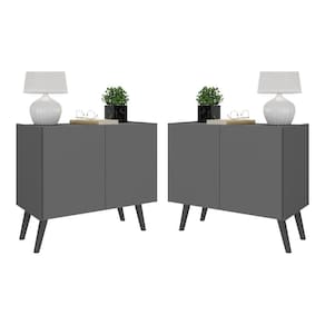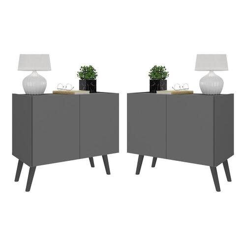Kit 2 Mesas De Cabeceira Retrô 2 Portas Mp4138 Grafite preto