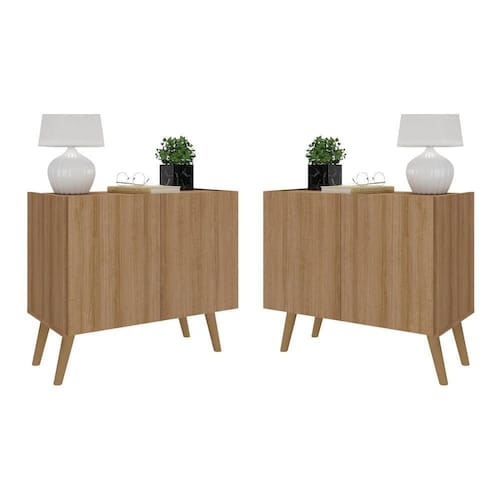 Kit 2 Mesas de Cabeceira Retrô 2 Portas Multimóveis MP4138 - Marrom