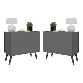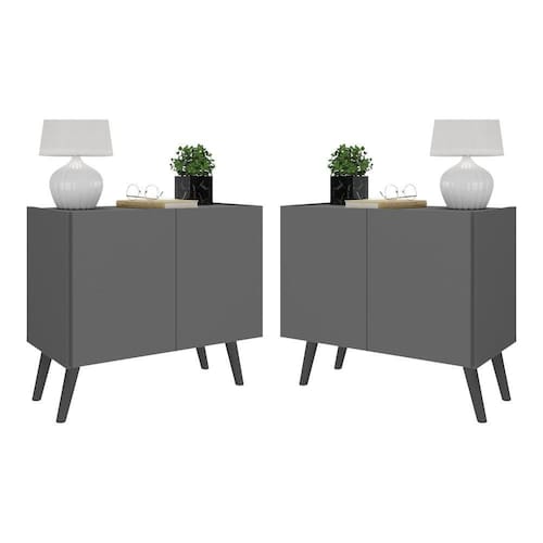 Kit 2 Mesas de Cabeceira Retrô 2 Portas Multimóveis MP4138 - Grafite