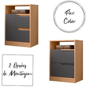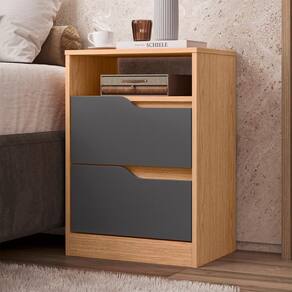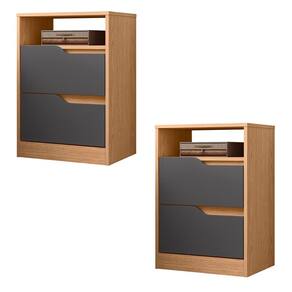 Kit 2 Mesas de Cabeceira Sole com 2 Gavetas e Nicho - Cinza