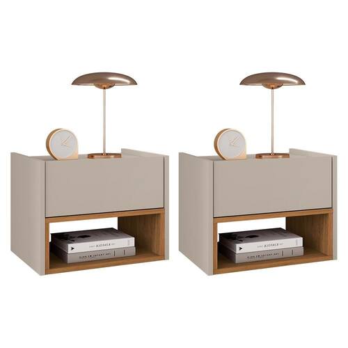 Kit 2 Mesas de Cabeceira Suspensa Florença 1 Gaveta - Casa D Com design compacto, moderno e funcional, a Mesa de Cabeceira Suspensa Florença é perfeita para otimizar o espaço do seu quarto. Produzida em MDF e MDP com pintura UV, traz elegância e praticidade ao ambiente. Possui 1 gaveta com corrediças telescópicas que garantem abertura suave e durabilidade, além de nicho interno ideal para organizar objetos do dia a dia. Por ser suspensa, facilita a limpeza e proporciona um visual mais leve e contemporâneo ao ambiente.