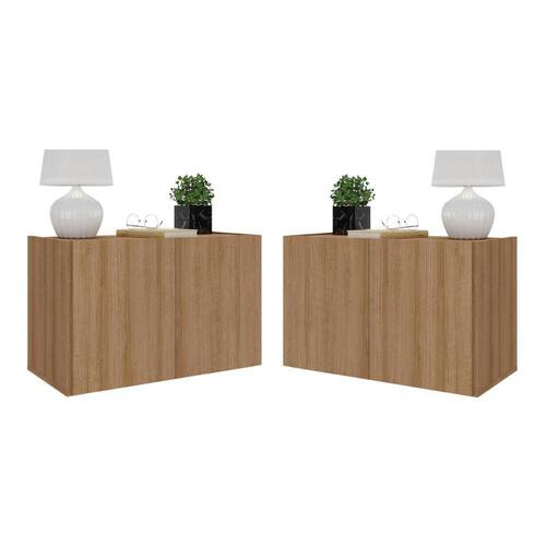Kit 2 Mesas de Cabeceira Suspensas 2 Portas Multimóveis MP4137 - Marrom