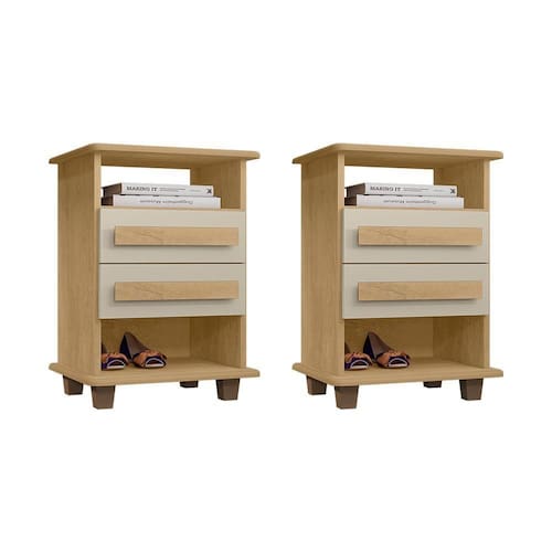 Kit 2 Mesas De Cabeceira Turim 2 Gavetas Cinamomo/off White
