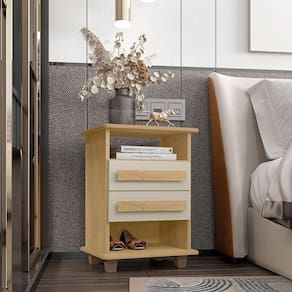 Com acabamento amadeirado, a Mesa de Cabeceira combina estilo contemporâneo e funcionalidade. Suas gavetas espaçosas e nichos abertos garantem organização, enquanto os pés elevados facilitam a limpeza. Ideal para quartos de solteiro ou casal, também pode ser usada como mesa lateral em outros ambientes da casa.