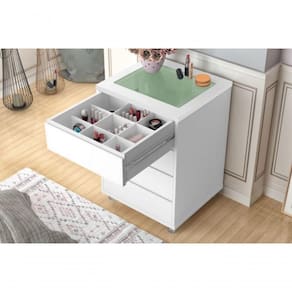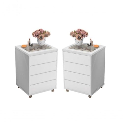 Kit Com 2 Mesas De Cabeceiras Decor Com Colmeira Organizadora Branca Potente