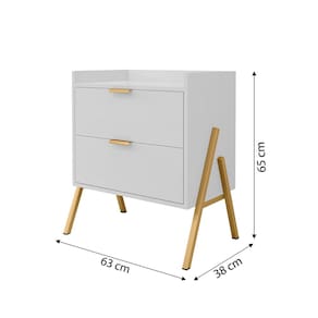 Kit 2 Mesas de Cabeceiras Retrô com 2 Gavetas Asher 63cm - Branco