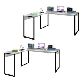 Pensando nisso, o Kit com 2 Mesas em L Studio Industrial, da Mpozenato, é perfeito para otimizar o espaço de circulação do Escritório Home Office e ganhar em área de trabalho. Essas mesas são compostas por duas peças cada, sendo a Mesa Reta medindo 150cm x 60cm (L x P) e a Mesa Auxiliar medindo 90cm x 45cm (L x P).