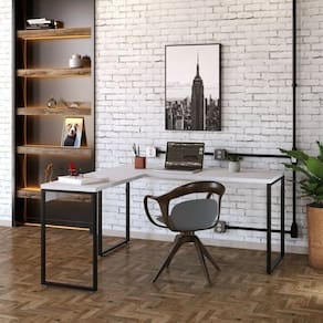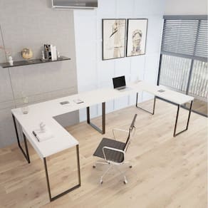A linha Kuadra tem seu design com inspiração no estilo industrial, que remete muito a decoração utilizada nos lofts das grandes metrópoles nos anos 60 e 70. Harmonizando o metal e os tons de madeira, foram projetados móveis versáteis e com estilo, que podem compor ambientes flexíveis cheios de personalidade, perfeitos para você decorar sua casa ou seu trabalho, tendo um resultado que caminha do estilo rústico ao moderno. Suas estruturas são fabricadas em aço, com soldas suavizadas e pintura texturizada epóxi-pó. Conta com pés niveladores de altura, espessura dos pés de 30x20mm e parafusos na cor preta. para os tampos são utilizados MDP-BP acetinado com fitas de borda em PVC, dando uma maior durabilidade ao seu móvel. O conjunto KUML150 tem montagem simples e versátil, podendo ser utilizado Altura do Conjunto: 75 cm Ambiente: null Ambiente Principal: Escritório Cor: Branco/Chess Informação Complementar: 2x Mesa de Escritório em L Estilo Industrial 1,50Mx1,50M Kuadra Branco Chess Largura: 150 cm Altura: 75 cm Peso: 24,56 kg Profundidade: 60 cm Necessita Montagem: Sim