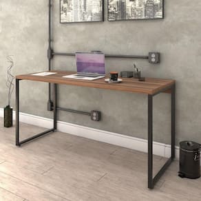 O Kit 2 Mesas de Escritório Office 150cm Estilo Industrial Prisma da Mpozenato, vai valorizar a decoração do ambiente com seu estilo industrial, harmonizando o metal e os tons de madeira resultando em um acabamento rústico misturado ao moderno. Produzida em MDP com tampo engrossado de 30mm, revestimento em BP, solda com acabamento suavizado e pintura epóxi a pó que proporciona maior durabilidade e resistência ao produto. Além disso, conta com pés niveladores. Essa mesa pode ser utilizada em diversas composições com outros móveis e pode fazer parte do seu escritório, sala ou home office.