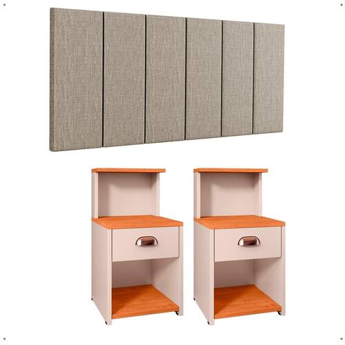 Transforme seu quarto com a Cabeceira Júlia e Kit 2 Mesinhas Cléo: conforto, elegância e funcionalidade em cada detalhe. A cabeceira estofada traz charme e apoio ideal para seus momentos de descanso, enquanto a mesa oferece o espaço perfeito para manter tudo à mão. O toque que faltava para seu ambiente ficar completo.