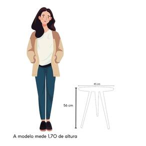 Transforme seu espaço com a Mesa de Canto Elegance! Uma peça que une estilo, praticidade e diversas funcionalidades. Além de complementar sua decoração com um design moderno e elegante, a Mesa Lateral Redonda oferece um espaço adicional perfeito para acomodar itens essenciais como bebidas, livros ou objetos decorativos, além de ficar linda ao lado do seu sofá pode ser usada também ao lado da cama como mesa de cabeceira.Feita com tampo em MDF de 15mm e pés palito retangulares de madeira maciça, essa mesa é ideal para vários ambientes, como halls de entrada, bares e recepções. A montagem é simples, e o produto chega praticamente pronto para uso, necessitando apenas rosquear os pés, facilitando sua vida.   Destaque sua decoração e aproveite todos os benefícios que a Mesinha Lateral Elegance oferece. Garanta já a sua!     Dimensões:   Altura: 56 cm (cada) Largura: 45 cm (cada) Profundidade: 45 cm (cada) Peso: 4 kg (cada) Suporta até 10 kg (cada)   Especificações:   Tampo: MDF 15 mm Pés: Madeira maciça eucalipto Montagem fácil: só rosquear os pés Garantia: 3 meses   Observações Relevantes:    - Produto para uso residencial em ambiente interno, não devendo ficar exposto diretamente ao sol, calor e umidades excessivas. - Pode haver alguma diferença de tonalidade entre a imagem e o produto real, por conta do tratamento de imagens e a calibração de cores do seu monitor. - As imagens são meramente ilustrativas, não acompanham objetos de decoração e eletros.   Conjunto Mesa Lateral Mesa Pé Palito Mesinha de canto Mesa de apoio Lateral Mesa auxiliar Mesa de sala Mesa lateral para sofá Mesa lateral decorativa Mesa lateral moderna Mesa lateral pequena Mesa lateral canto e apoio decoração de interiores mesa lateral de apoio para sofá Mesinha redonda Mesa Retrô Mesas auxiliares Mesa de apoio redonda