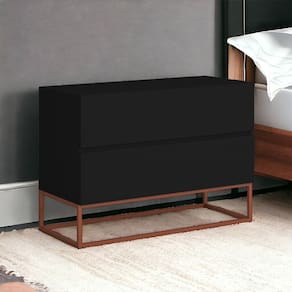 - Design moderno e exclusivo- Duas gavetas com corrediças telescópicas- Pés de ferro com pintura eletrostática- Puxadores embutidos (cava)- Ponteiras que protegem o piso- Suporta até 9kg por gaveta]