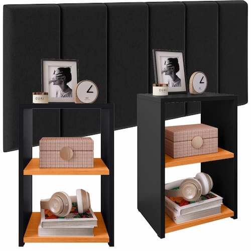 Ideal para quem valoriza organização e praticidade sem abrir mão de estilo, o kit traz duas mesas de cabeceira Bella e a sofisticada Cabeceira Júlia. As mesas foram cuidadosamente projetadas para trazer modernidade e funcionalidade, com uma prateleira espaçosa para acomodar livros e objetos essenciais, mantendo tudo sempre ao alcance. A Cabeceira Júlia, com seu design modular e estofado macio, proporciona conforto extra para momentos de leitura ou maratona de séries, além de acrescentar um charme incomparável ao seu ambiente.