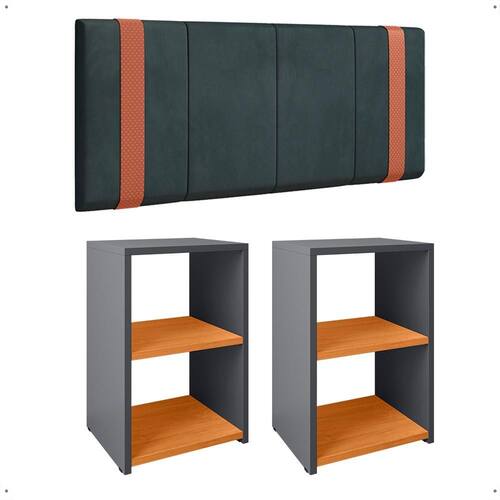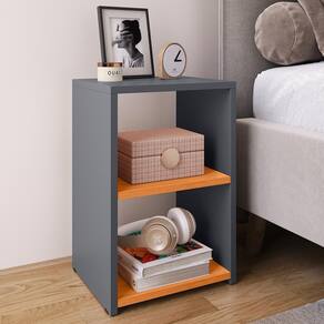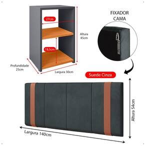 Kit 2 Mesinhas Bella Lateral Prateleira Organizadora Cinza/Cinamomo Cabeceira Parise Suspensa Cama Box Casal 1,40 Estofada Suede - Lojas RPM